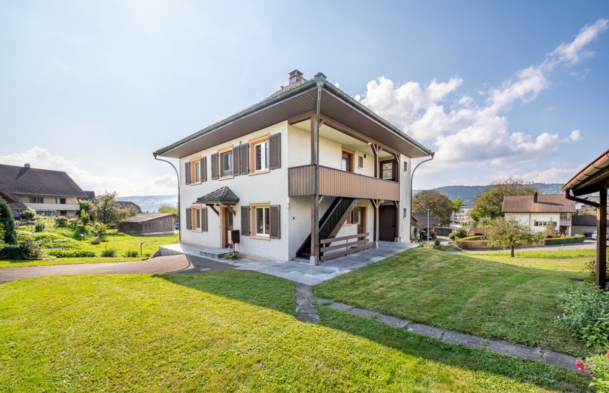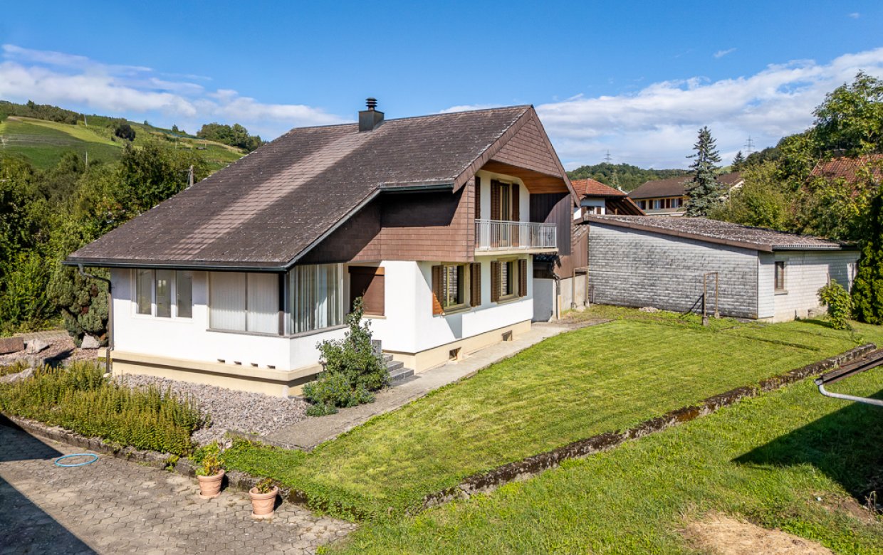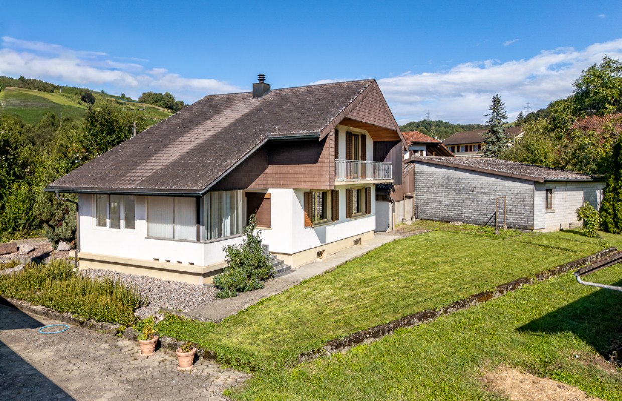 5 Zimmer, 94 m² Wohnfläche,1'258 m² Grundstück, ruhige und zentrale Lageschöner, gedeckter Sitzplatz, Wintergartengeschlossene Küche, 1 Bad/WC, sep. WCSchopf, Gartenhaus, Einzelgarage und AussenabstellplätzeVerkaufspreis CHF 750'000.-