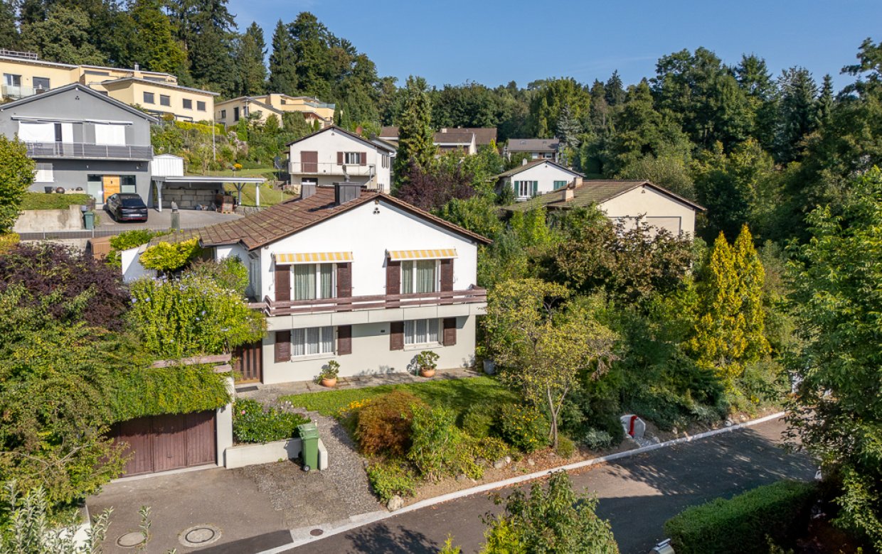 5½ Zimmer, 173.5 m² Wohnfläche,659 m² Grundstück, ruhige und zentrale Lageschöner, gedeckter Sitzplatz mit Cheminéeoffene Küche, 1 Bad/WC, 1 Dusche/WC, Weit- und Fernsicht1 Einzelgarage und VorplatzVerkaufspreis CHF 1'690'000.-